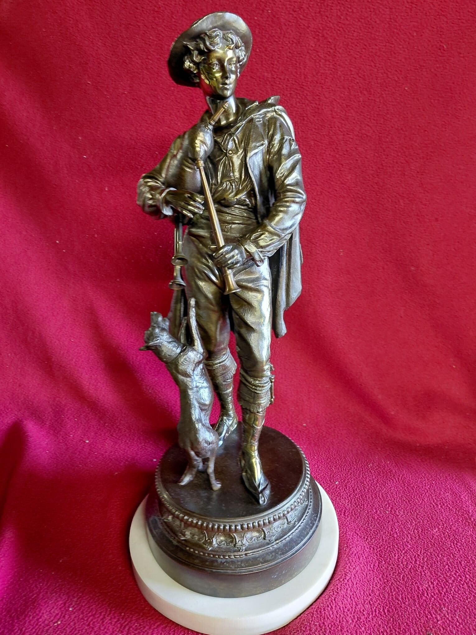 #herder #hond #muzikant #bronzen patina #Le Pâtre #19e eeuws #Emile Bruchon