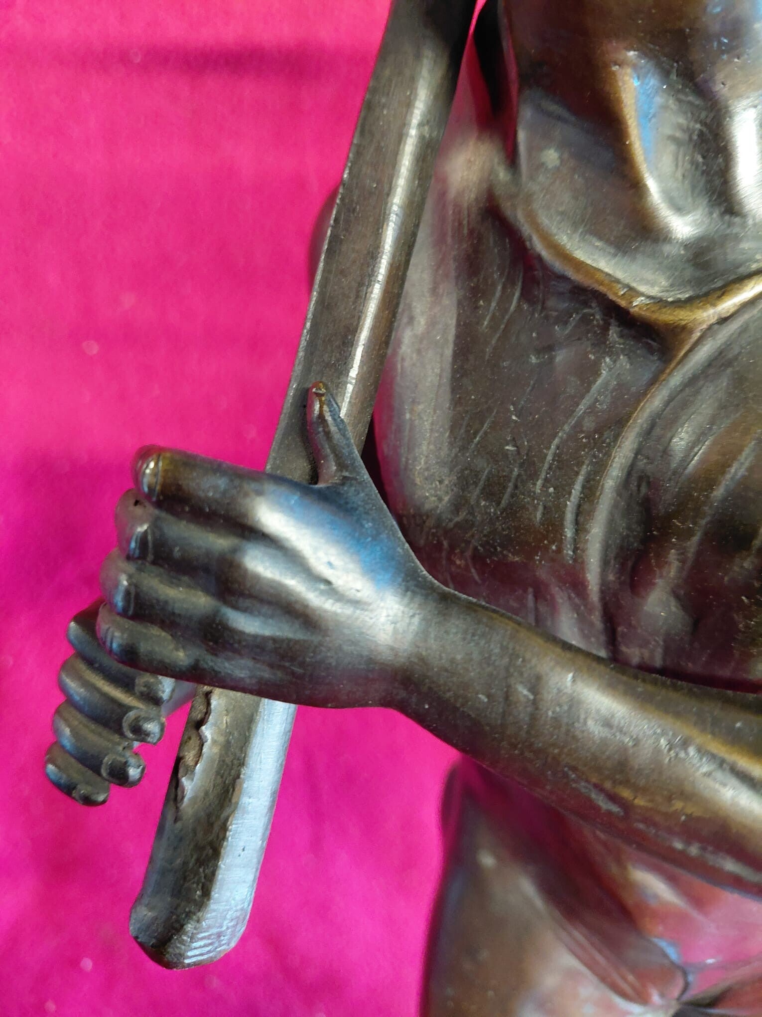 Antiek bronzen beeld van een mijnwerker. Dit type beelden waren zeer populair in het begin van de 20ste eeuw. (art nouveau/art deco periode) en stelt vaak de trots van de handenarbeid centraal. Getekend door Manier